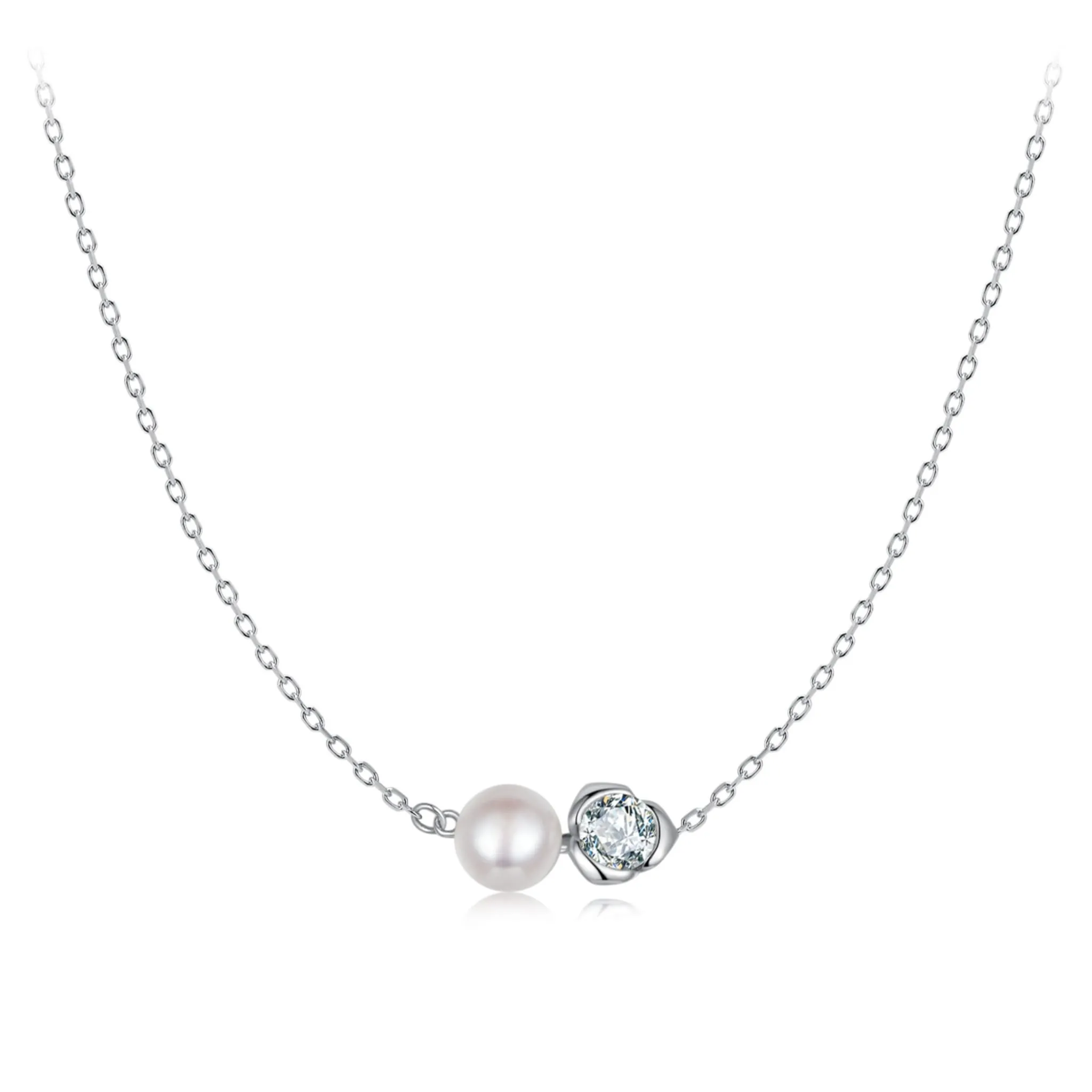 Srebrny naszyjnik zawieszka perła i różyczka z Moissanitem 0,5 ct srebro 925