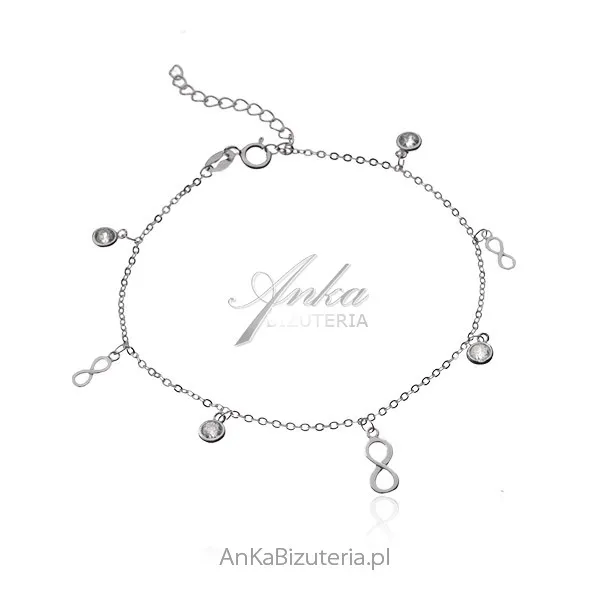 Srebrna bransoletka z nieskończonościami i cyrkoniami