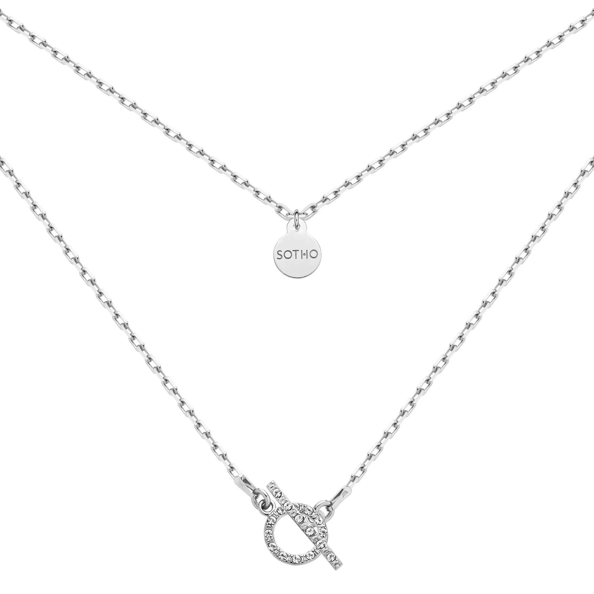 Srebrny naszyjnik z ozdobnym zapięciem i kryształkami SWAROVSKI® CRYSTAL. Wszystkie elementy wykonane ze srebra 925. Długość naszyjnika do wyboru 40, 45 lub 50 cm Grubość łańcuszka 2,3 mm Ozdobne zapięcie: Kółko 12 mm Pałeczka 18 mm Zawieszka z logo 10 mm Produkt o wadze poniżej 5 g. Zapakowany w eleganckie pudełeczko z logo marki. Posiada logowana metkę. Istnieje możliwość zamówienia naszyjnika innej długości, z większą ilością zawieszek, z innym modelem zawieszki, z zawieszkami ze srebra 925 powlekanego 24 karatowym różowym lub żółtym złotem, z innymi perłami, kryształami SWAROVSKI® CRYSTAL, kamieniami itp.