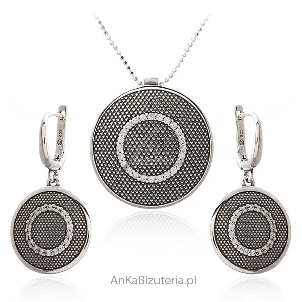 Komplet biżuteria srebrna oksydowana z cyrkoniami