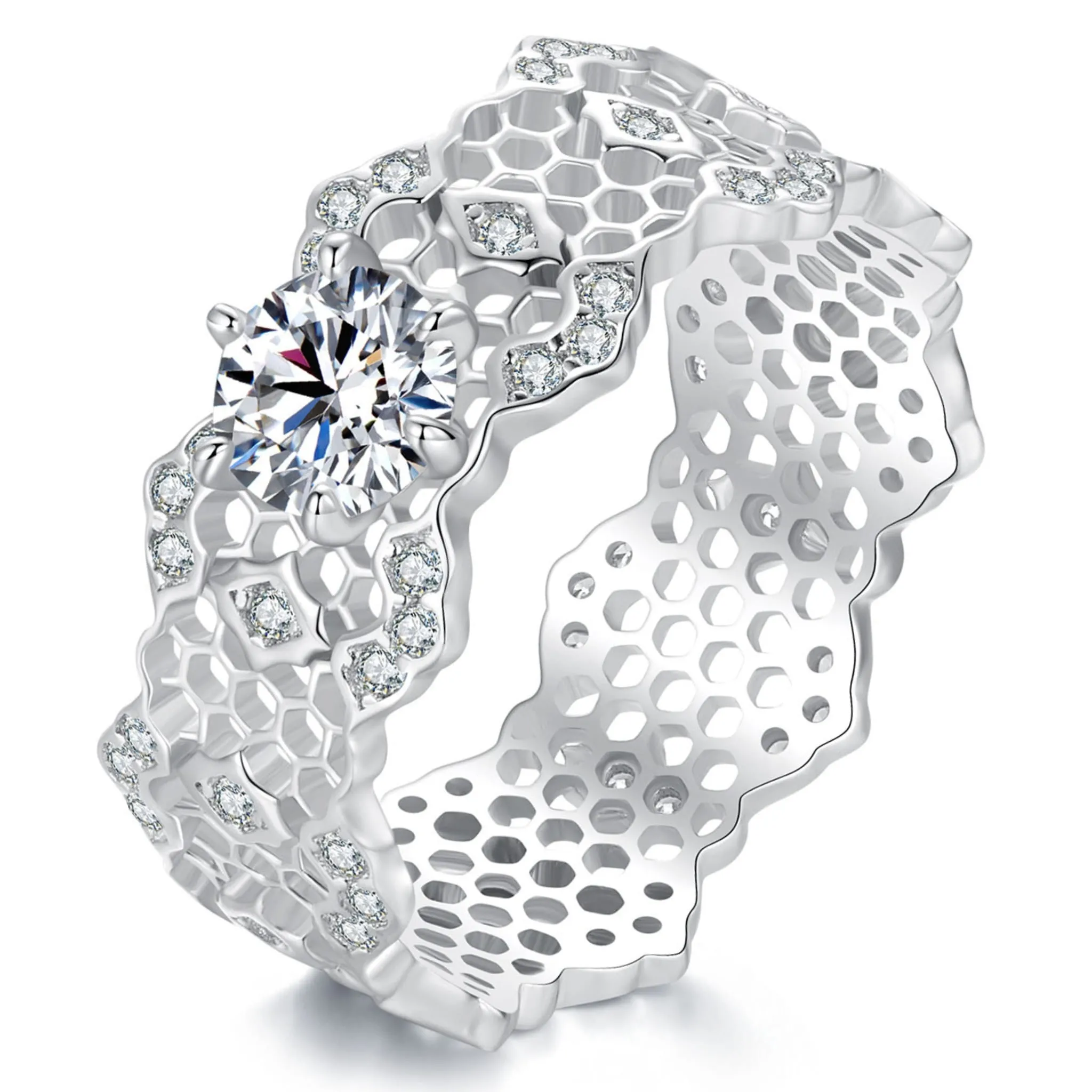 Srebrny pierścionek plaster miodu R14 Moissanit 0,5 ct srebro 925