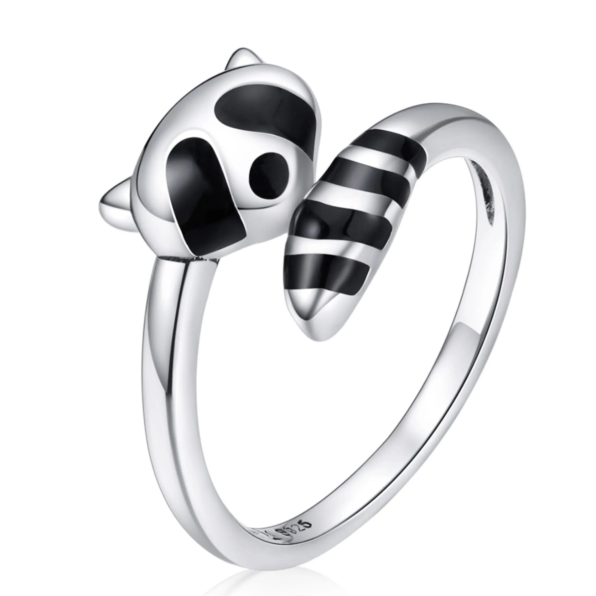 Srebrny pierścionek regulowany z szopem praczem srebro 925