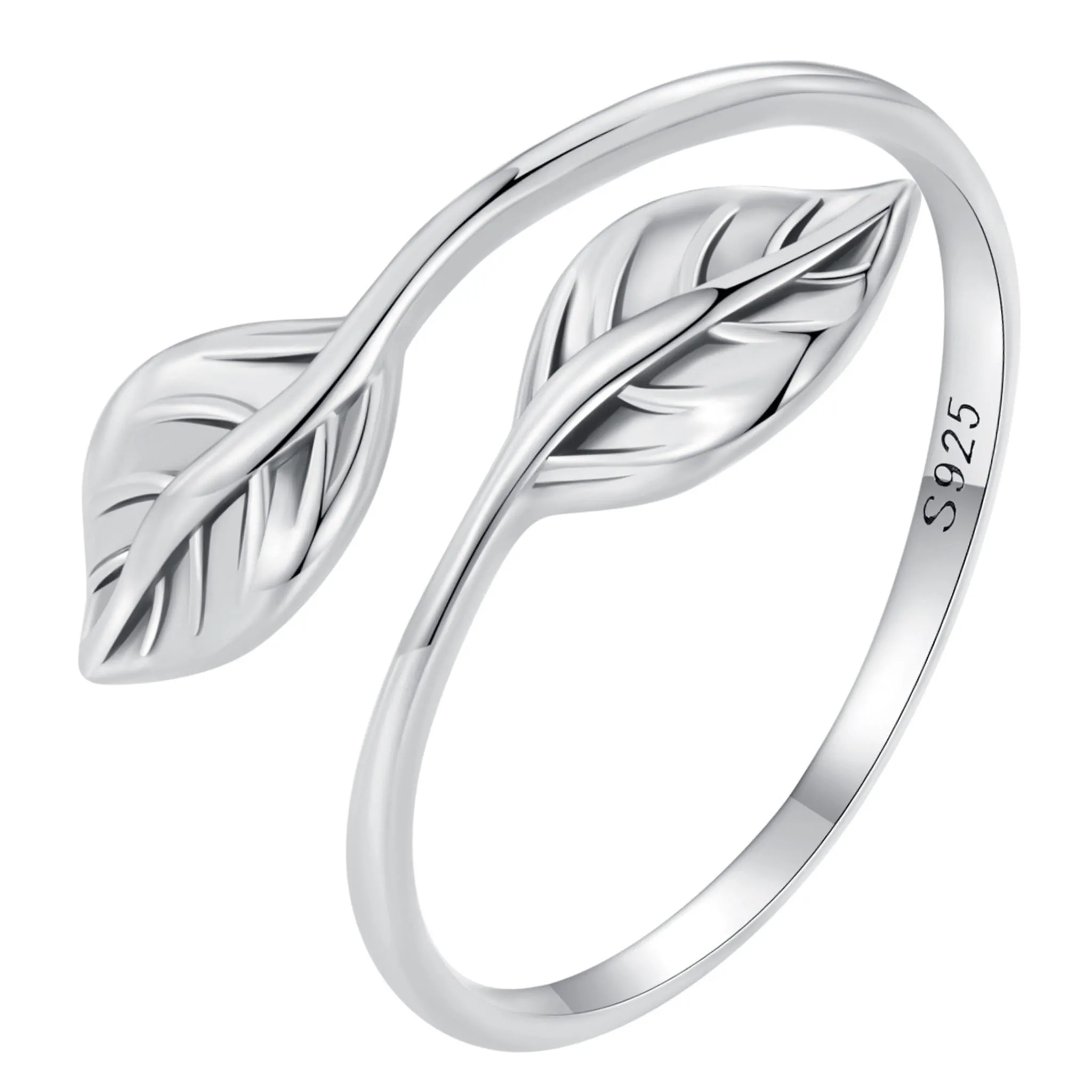 Srebrny pierścionek uniwersalny z dwoma listkami srebro 925
