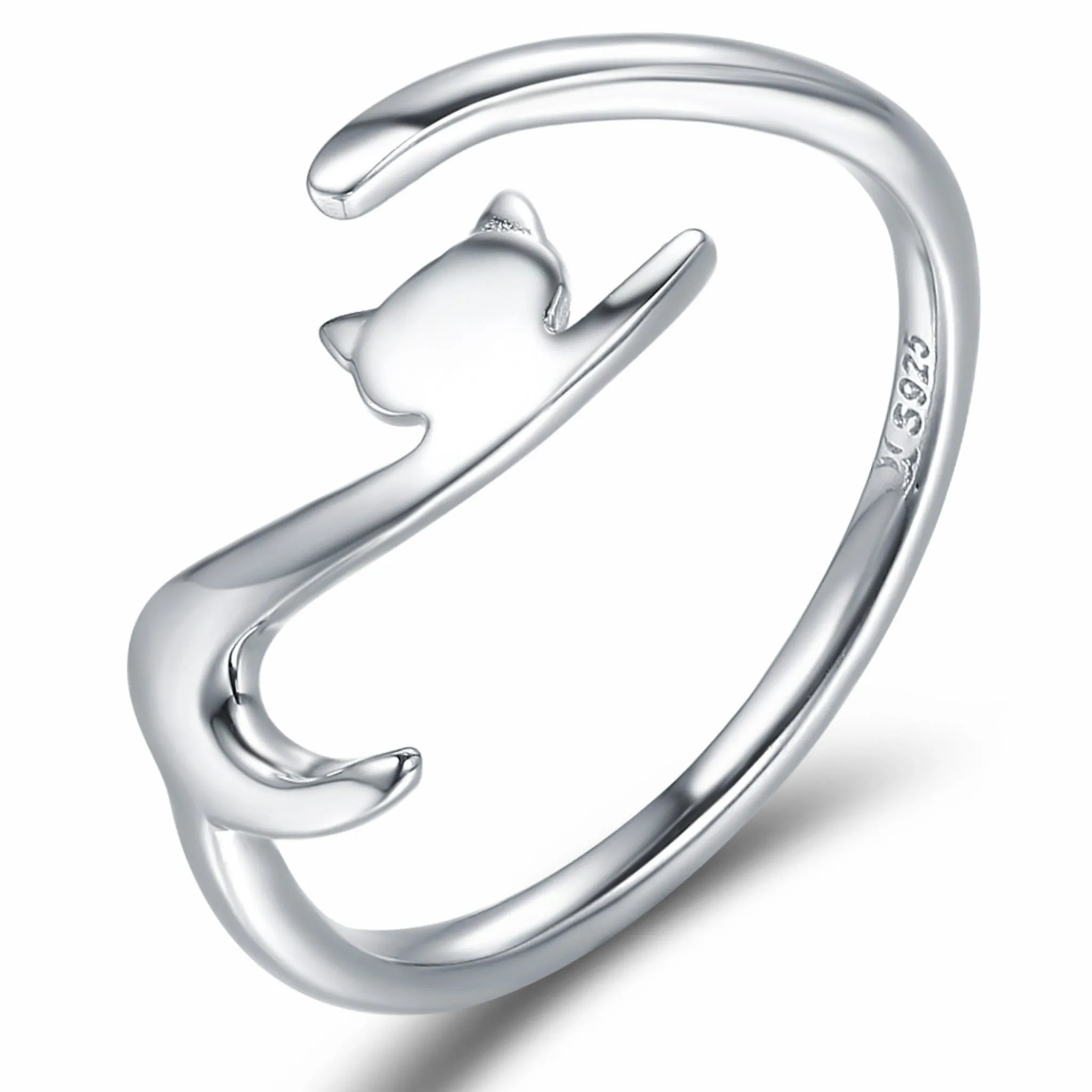 Srebrny pierścionek uniwersalny kotek z długim ogonem srebro 925