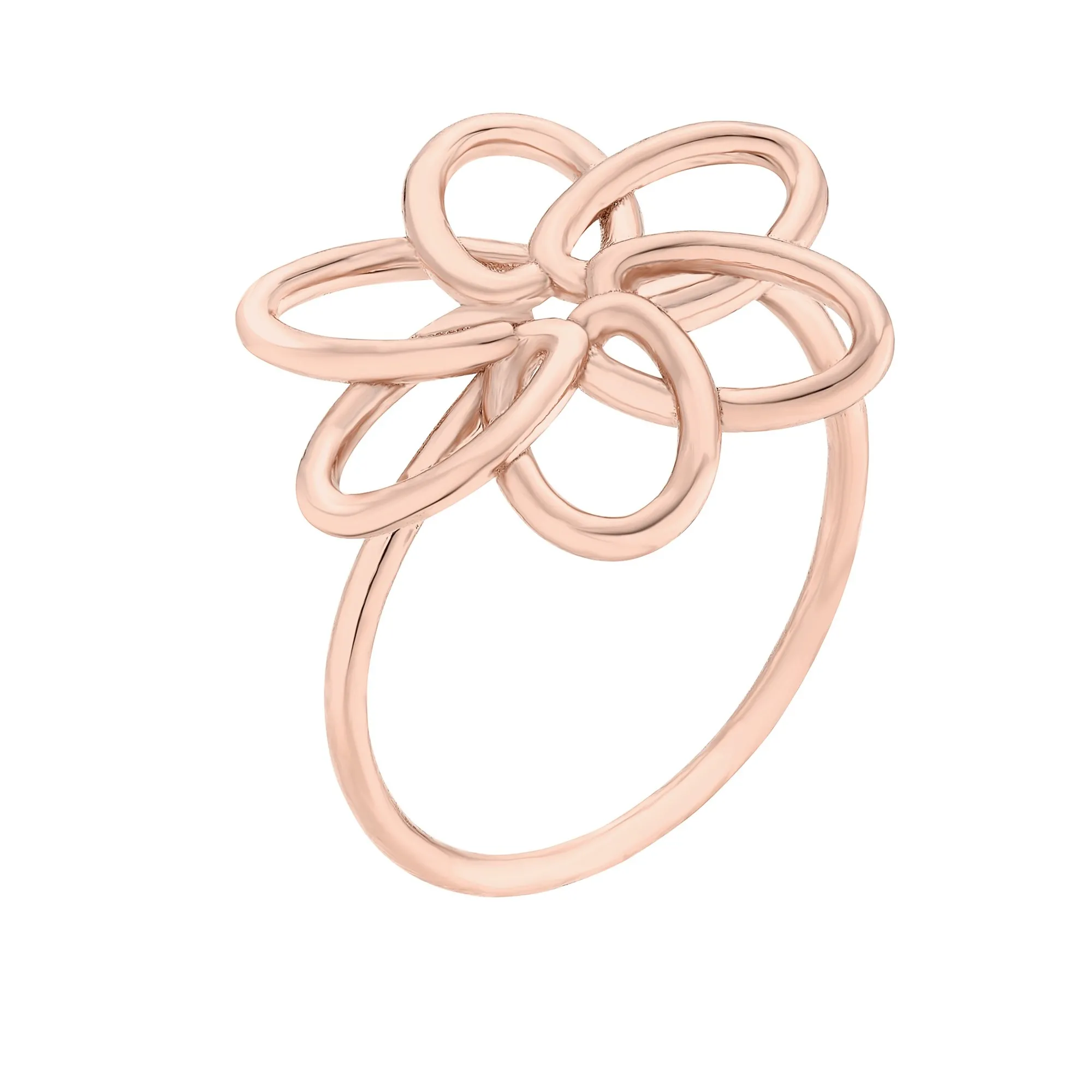Srebrny pierścionek z kwiatkiem wykonany ze srebra 925. Pierścionek dopasowuje się do rozmiaru palca poprzez delikatne rozginanie lub dociskanie obręczy. Rozmiar uniwersalny Pierścionek został wykonany z drutu giętego o grubości 0,8 mm Kwiatek 17 mm Produkt o wadze poniżej 5 g. Zapakowany w eleganckie pudełeczko z logo marki. Posiada logowana metkę. Istnieje możliwość zamówienia pierścionka ze srebra 925 powlekanego 24 karatowym żółtym lub różowym złotem.