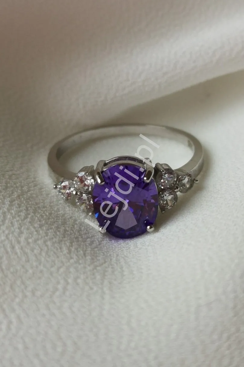Pierścionek zaręczynowy z fioletowym oczkiem