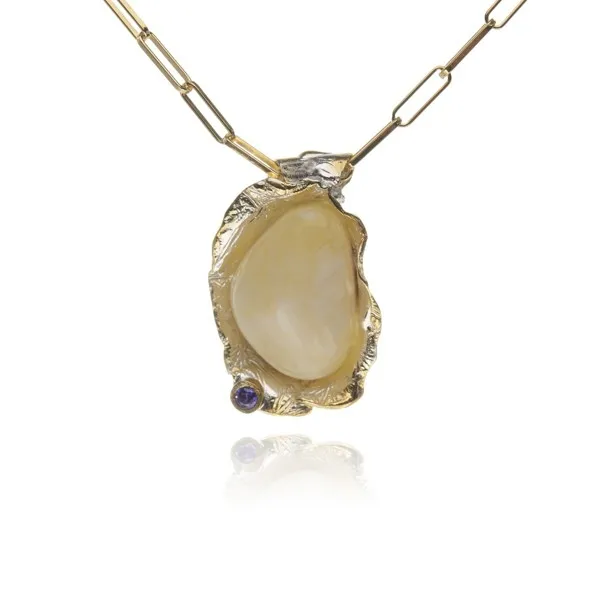 Zawieszka srebrna pozłacana z żółtym bursztynem i ametystem
