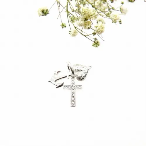 Wisiorek srebrny - Wiara, nadzieja, miłość w satynie