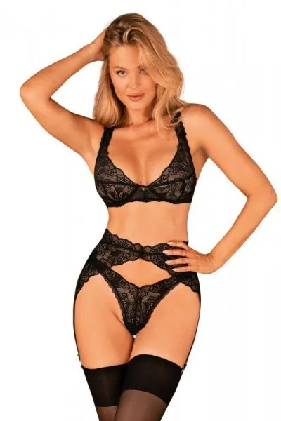 Czarne stringi Donna Dream z elastycznym otwartym krokiemkoronkowy materiał – dodaje seksapilusrebrna zawieszka – łapie spojrzeniedelikatny materiał – komfort i dopasowanie (90% poliamid, 10% elastan)…