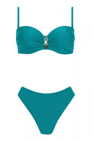 Modny i niezwykle elegancki strój kąpielowy renomowanego producenta.Atrakcyjny jednoczęściowy kostium kąpielowy o fasonie sukienki połączony z figami.Model zachwyca perfekcyjnym wykonaniem.Efektowne detale tworzą niepowtarzalny styl.Wspaniała propozycja dla eleganckiej kobiety, która ceni klasykę i wygodę.Usztywnione wyprofilowane miseczki push-up bez fiszbin, które dobrze kształtują i utrzymują biust pięknie go powiększając (miski formowane termicznie, wkładki nie są wyjmowane).Strój posiada dodatkowo boczne fiszbiny i elastyczną taśmę pod biustem, co pozwala lepiej trzymać biust.Między miseczkami delikatne marszczenie i ozdoba w kolorze złotym.Ramiączka regulowane i odpinane.Uroku dodaje delikatna siateczka, która dzięki skośnemu ułożeniu optycznie wyszczupla sylwetkę.Tył gładki, figi pełne klasyczne.Kostium od wewnątrz pokryty jest delikatną podszewką, dzięki czemu można czuć się swobodnie, ponieważ strój nie prześwituje.Idealnie sprawdzi się zarówno na basenie jak i plaży.Materiał odporny na chlor, wodę morską i słońce.Strój kąpielowy wykonany z wysokiej jakości tkaniny, zapewniającej wysoki komfort noszenia.Skład materiału: 78% poliamid, 22% elastan…