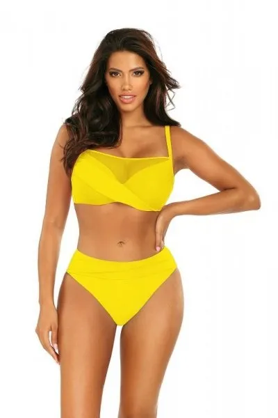 Modny i niezwykle elegancki jednoczęściowy strój kąpielowy renomowanego producenta.Prezentuje się prześlicznie na żywo.Model zachwyca perfekcyjnym wykonaniem.Wspaniała propozycja dla eleganckiej kobiety, która ceni klasykę i wygodę.Uroku dodają tiulowe falbanki przy ramiączkach oraz delikatna siateczka pod biustem.Biustonosz bez fiszbin posiada delikatnie usztywnione miseczki.Łączenie misek ozdobione logo marki SELF.Tył gładki, figi pełne klasyczne.Kostium od wewnątrz pokryty jest delikatną podszewką, dzięki czemu można czuć się swobodnie, ponieważ strój nie prześwituje.Idealnie sprawdzi się zarówno na basenie jak i plaży.Materiał odporny na chlor, wodę morską i słońce.Strój kąpielowy wykonany z wysokiej jakości tkaniny, zapewniającej wysoki komfort noszenia.Skład materiału: 90% poliamid, 10% elastan…