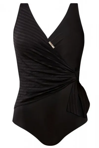 Kostium kąpielowy jednoczęściowy, który posiada usztywnione miseczki i jest bez fiszbin. Pod linią biustu wszyta została guma dla lepszego podtrzymania biustu. Efektowny marszczony przód a z boku ozdobne wiązanie. Model idealny na plażę jak również na basenSkład: 78% poliamid, 22% elastan…