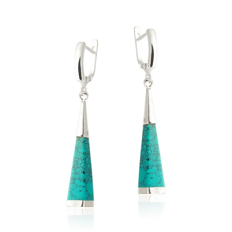 Kolczyki srebrne „perska laguna” – długie z naturalnym turkusem