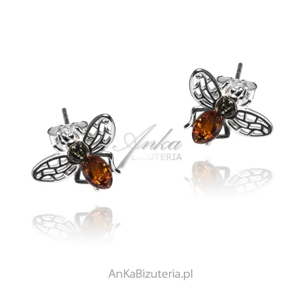 Kolczyki srebrne pszczółki z bursztynem