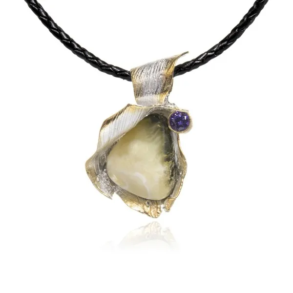 Zawieszka srebrna pozłacana z żółtym bursztynem i ametystem