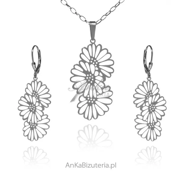 Komplet biżuteria srebrna kwiaty polskie