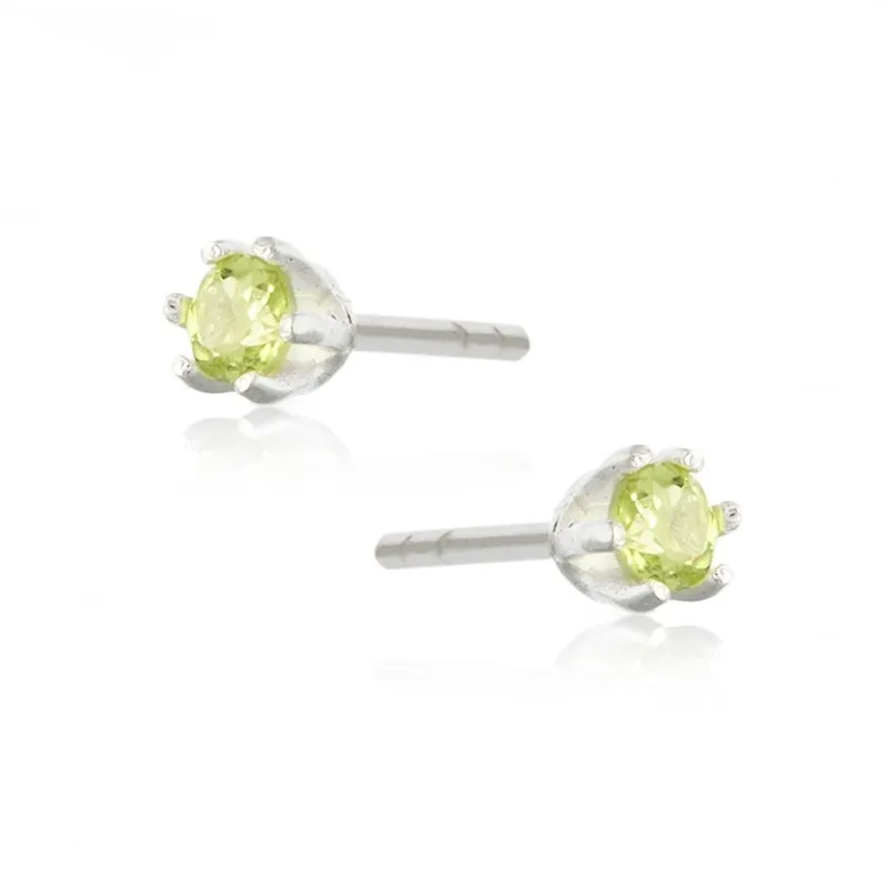 Subtelne kolczyki srebrne z oliwin - maleńkie sztyfty 3,5 mm