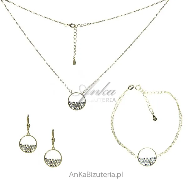 Srebrna biżuteria - komplet pozłacany z kolorowymi cyrkoniami