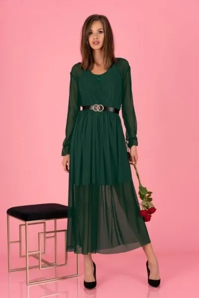 Efektowna, dopasowana do ciała sukienka z ozdobnymi, złotymi zatrzaskami wzdłuż bioder. Szukasz czegoś uniwersalnego, eleganckiego i sexy? – proszę bardzo! Idealna propozycja na wieczór We Dwoje i nie tylko. Ps. Dekolt migdałowy, rękawy za łokcie. Skład: 95% poliester, 5% elastan. …