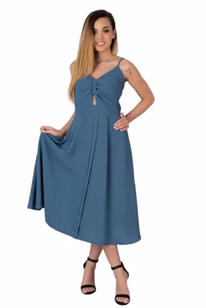 Stylowa, plisowana sukienka wiązana paskiem w pasie. Dekolt przekładany, sprawi, że poczujesz się zmysłowo i pięknie. Rękawki w formie delikatnych falbanek. Wersja dłuższa, pięknie się prezentuje. Skład: 95% poliester, 5% elastan. …
