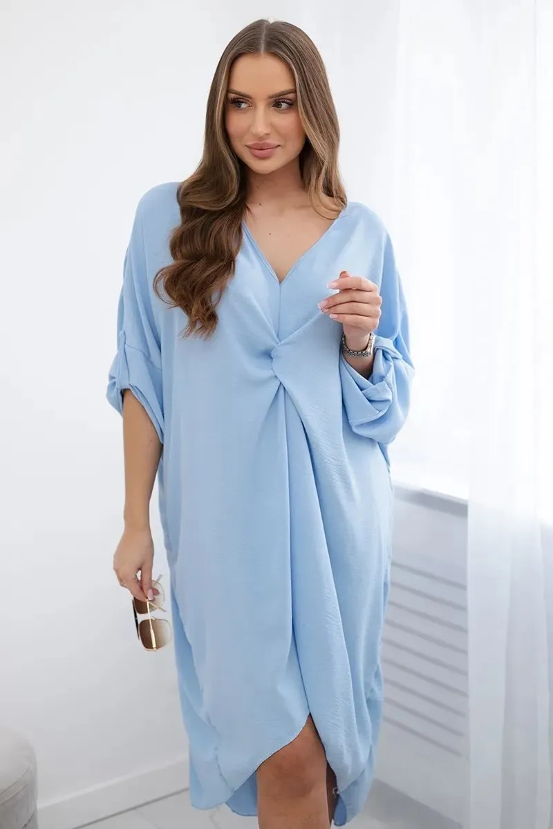 Sukienka oversize z dekoltem V niebieska