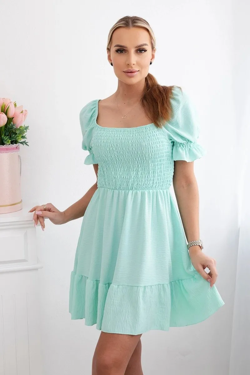 Strona główna » Sklep » Odzież, obuwie, dodatki » Odzież damska » Sukienki i suknie » Sukienka marszczona z falbankami ciemno miętowa