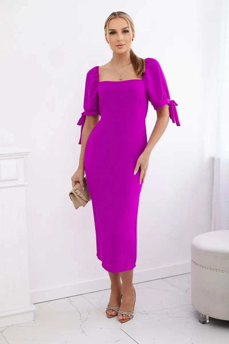 Sukienka marszczona z tyłu z wiązanym rękawem ciemny fioletowy