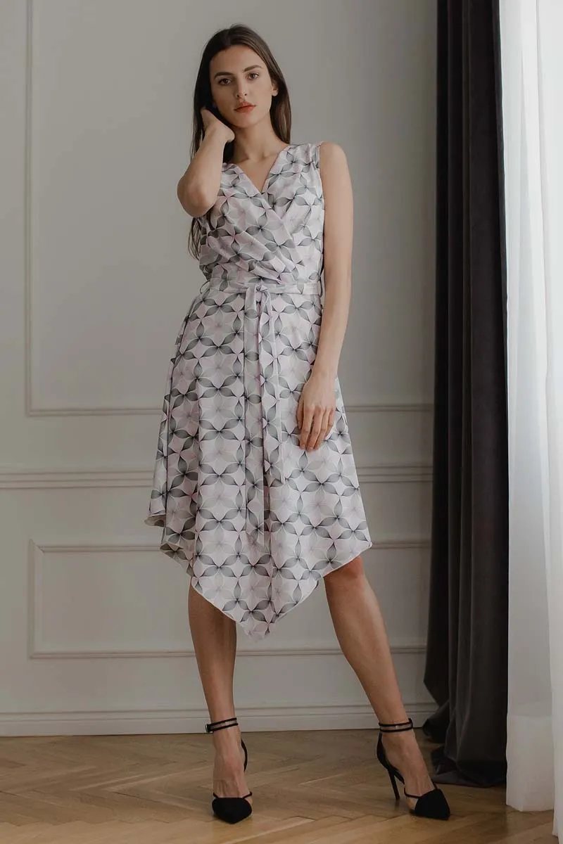 Asymetryczna Sukienka z Kopertowym Dekoltem - Wzór 113