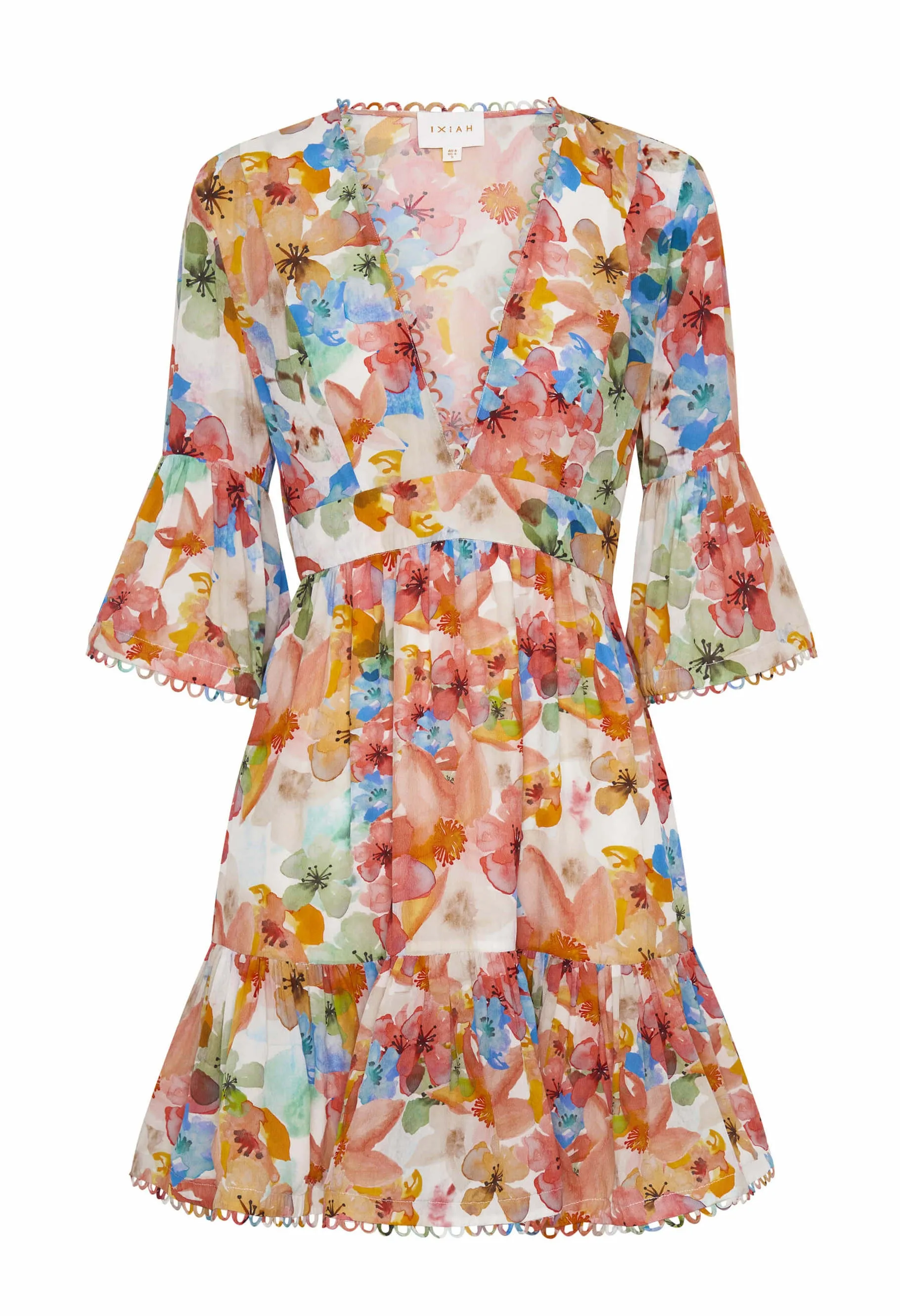 SUKIENKA MINI HEMANT AND NANDITA W KWIATOWY PRINT Minisukienka Hemant and Nandita kwiatowy print. Długość do połowy uda eksponuje nogi. Nie ma ramiączek, więc podkreśla również dekolt i ramiona. Świetnie wygląda z płaskimi klapkami, jak również sandałkami na wysokiej szpilce. Marszczony dół zakończony jest rozkloszowaną falbanką. W talii znajduje się pasek. Ma błękitny kolor i kwiatowy print, który jest charakterystyczny dla tej hinduskiej marki. Sukienka Hemant i Nandita to świetna propozycje na szczególne okazje, na przykład na wesele i cocktail party. Materiał: 1: 55% bawełna, 45% len 2: 100% bawełna Sprawdź inne produkty HEMANT AND NANDITA