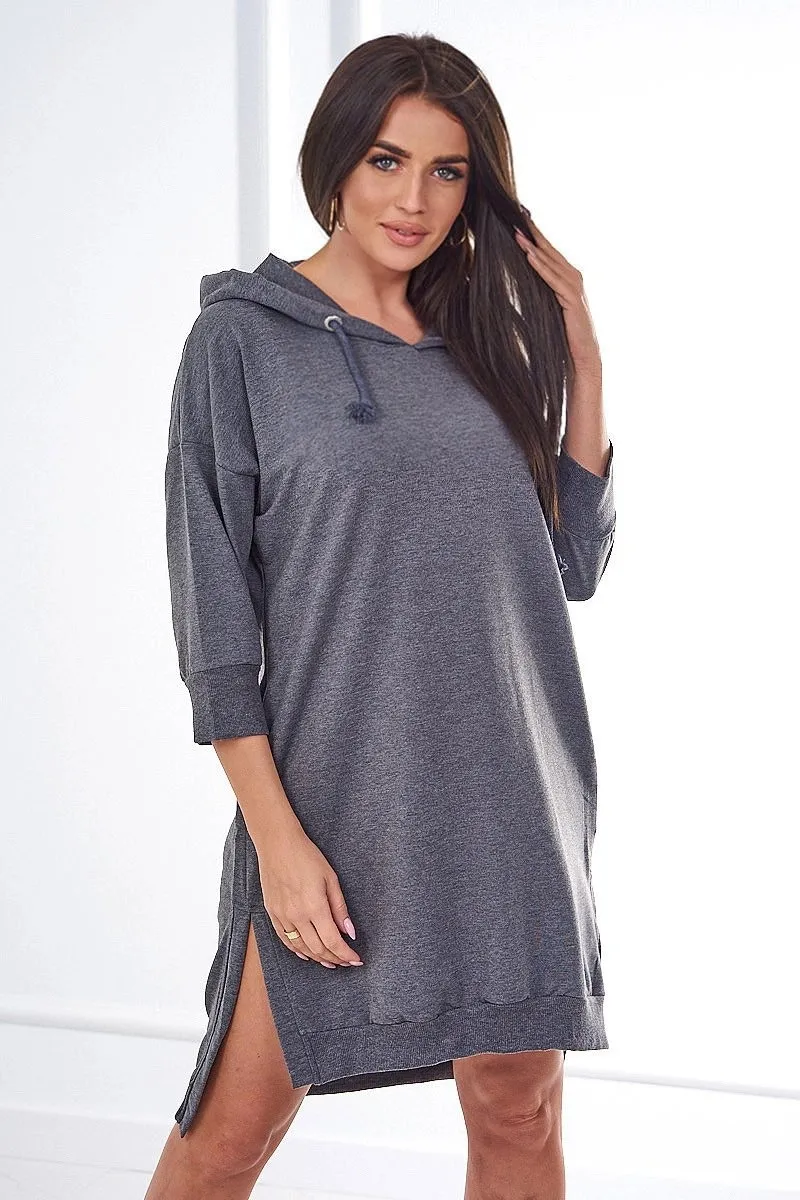 Sukienka z kapturem i dłuższym tyłem grafitowa