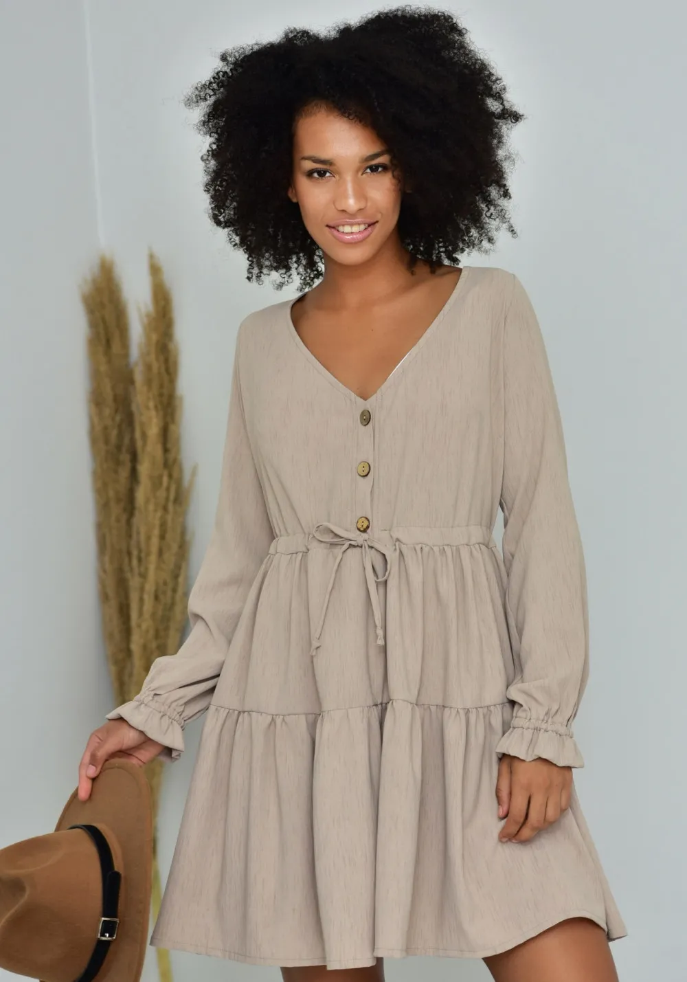 Kwiatowa niebieska sukienka z długim rękawem w latynoskim stylu. Seksowna sukienka ma spódniczkę mini oraz głęboki, trójkątny dekolt. To model, który podkreśli biust i talię. Sukienkę w kwiaty włożysz na randkę, na wesele i na imprezę. Co ważne, kopertowy fason ładnie dopasowuje się do sylwetki. W DavidK kupisz tę sukienkę również w innych wzorach. Skład: 100% wiskoza XS S M L 1/2 BIUST 41 43 45 47 1/2 TALIA 34 36 38 40 RĘKAW 42 42 42 42 DŁUGOŚĆ 106,5 107 107 108