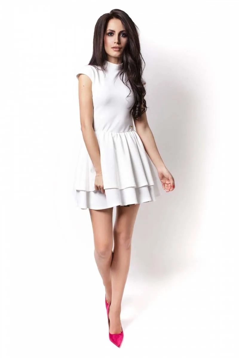 Ecru Sukienka z Niewielką Stójką z Falbankami