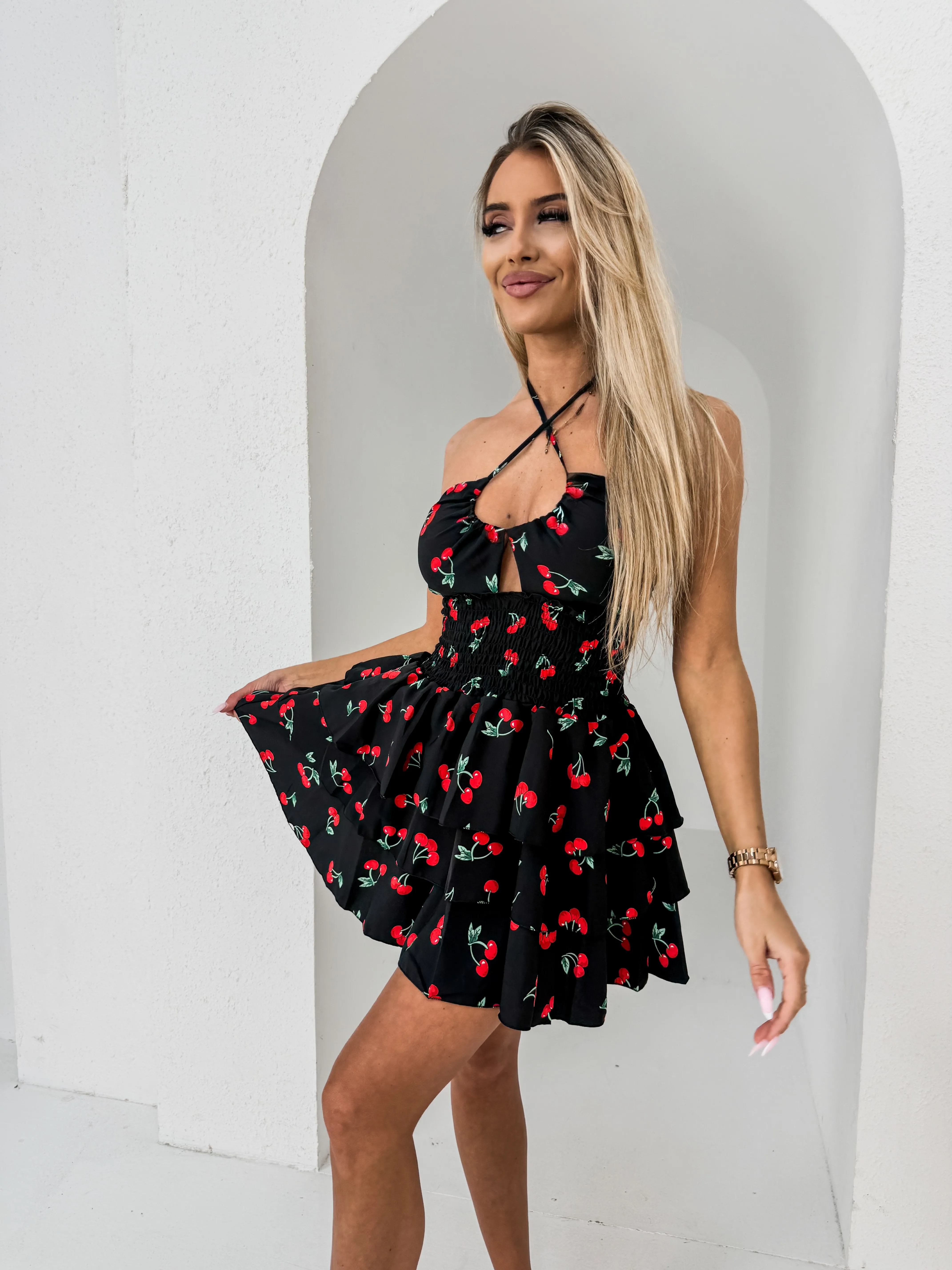 99,00 złSukienka z falbanami w wisienki czarna Cherry PW10 (Wariant rozmiar + kolor: S/M; Kolor: czarny)