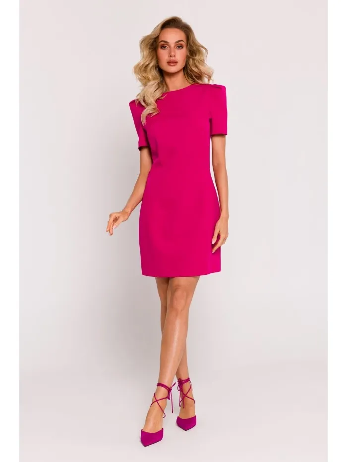 Odkryj sukienkę w kolorze fuksji, która łączy w sobie elegancję z nowoczesnym designem. Ta unikalna kreacja mini z krytym zamkiem z tyłu oferuje płynną i schludną sylwetkę, idealnie komponującą się z każdą okazją. Długość mini podkreśla nogi, zapewniając wygląd pełen gracji i kobiecości. Modelujące przeszycia na przodzie sukienki doskonale rzeźbią i akcentują sylwetkę, tworząc iluzję smukłości i elegancji. Krótkie, ozdobne rękawy wykończone wszytymi poduszkami dodają odrobinę retro szyku, idealnie balansując nowoczesność i klasykę. Bez podszewki, sukienka zapewnia lekkość i swobodę ruchów, a jej wykonanie w Polsce gwarantuje najwyższą jakość materiałów i krawiectwa. Modelka prezentująca sukienkę ma 171 cm wzrostu i nosi rozmiar S, co pozwala zobaczyć, jak ubranie prezentuje się w ruchu. Ta sukienka to idealny wybór dla każdej kobiety ceniącej sobie styl i komfort, zaprojektowana i uszyta z myślą o nowoczesnej, dynamicznej kobiecie.