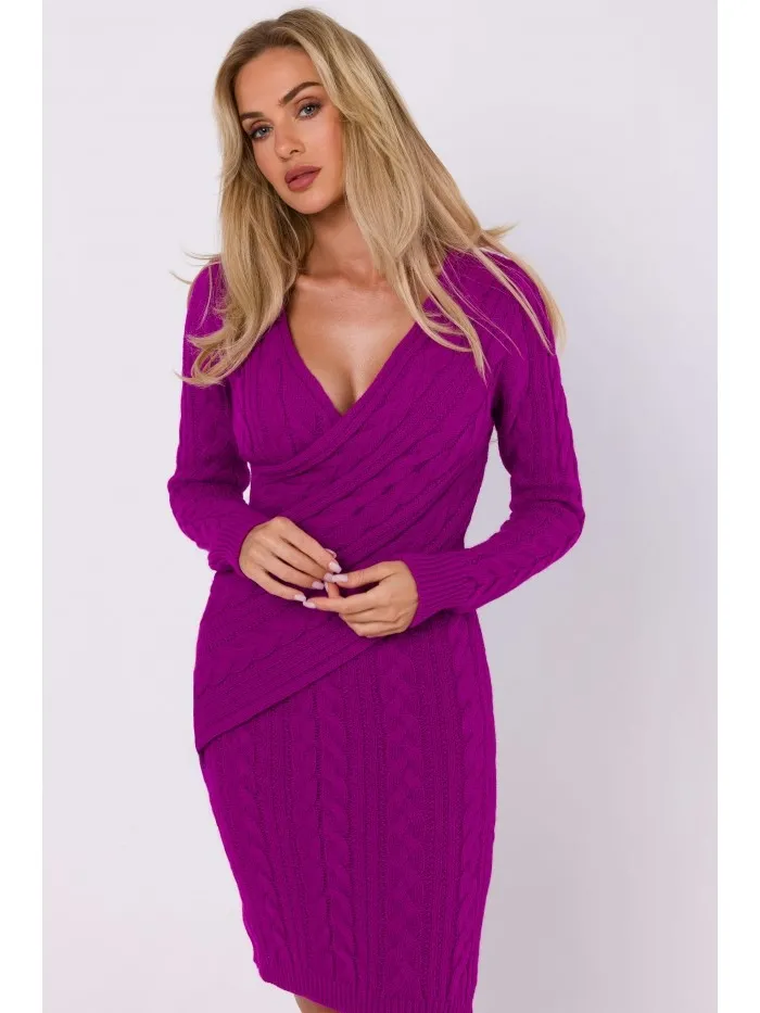 Sukienka z przeplotem - purpurowa - Rozmiar: S/M