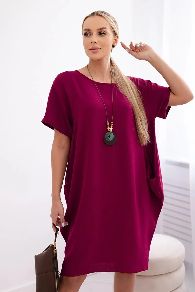 Sukienka z kieszeniami i wisiorkiem śliwkowa