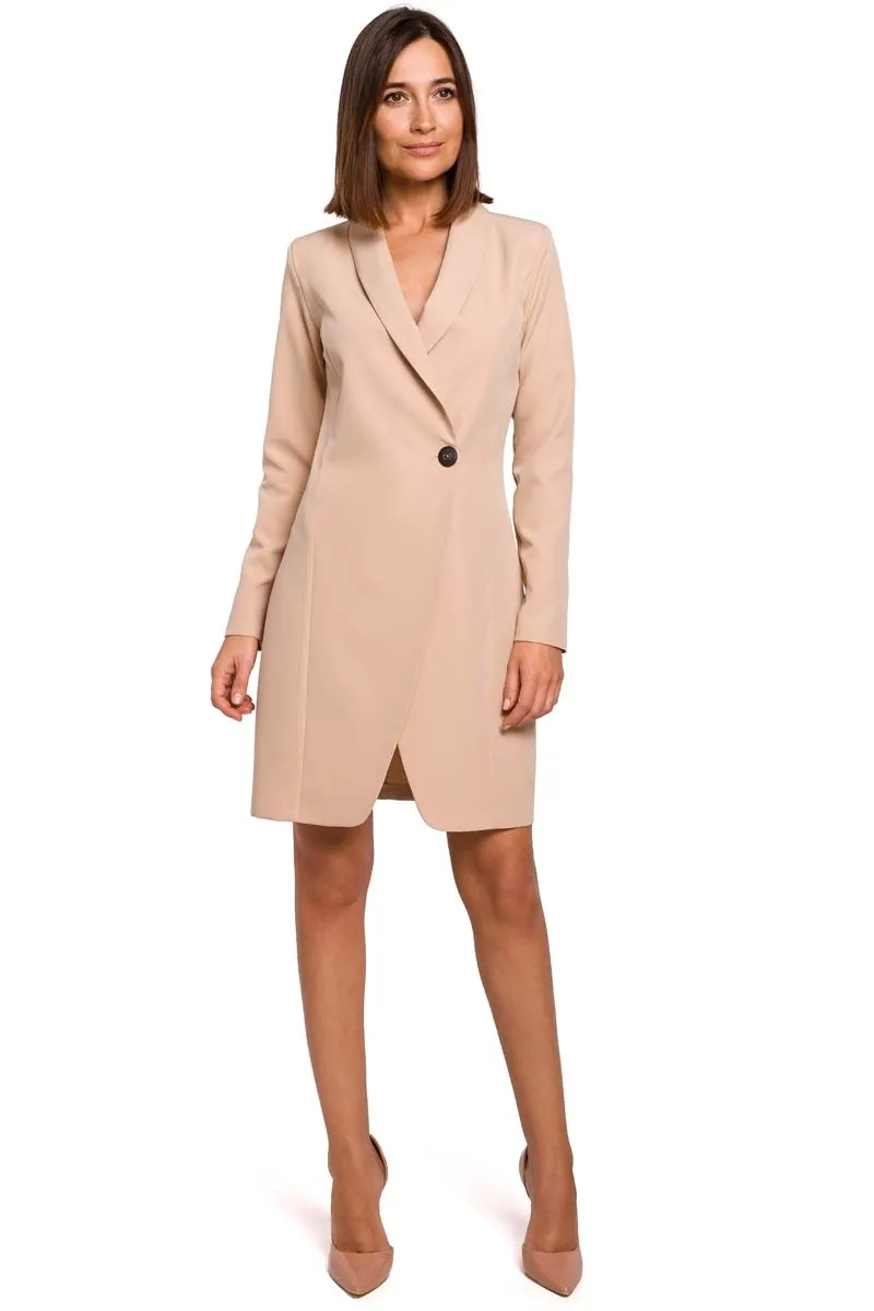 Sukienka żakietowa na jeden guzik - beżowa - Rozmiar: S