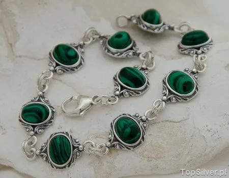 LARINO - srebrna bransoletka z malachitem
