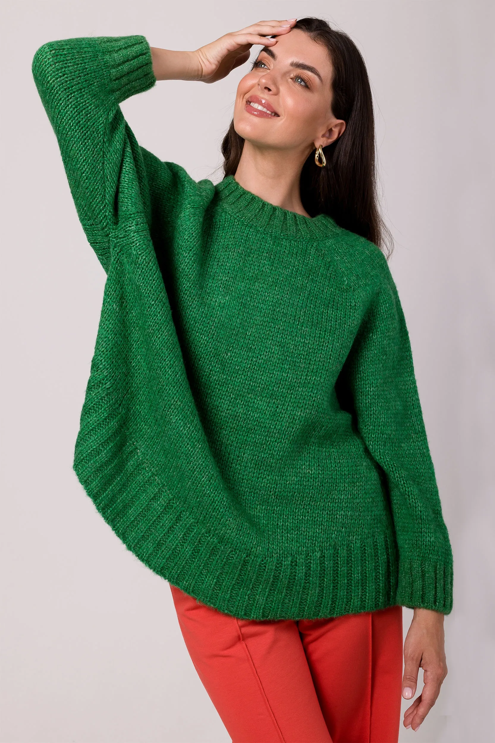 Sweter Oversize z Nietoperzowym Rękawem - Szmaragdowy