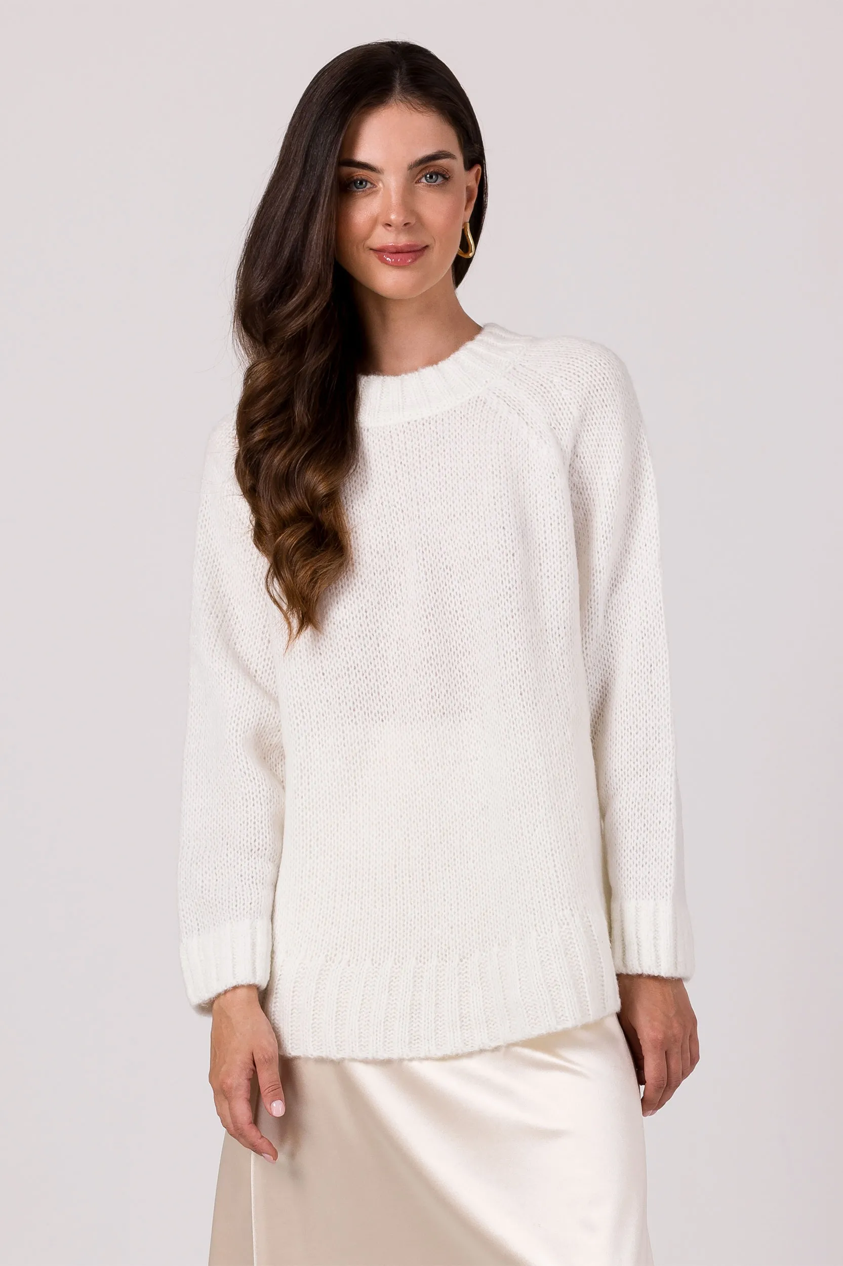 Sweter Oversize z Nietoperzowym Rękawem - Biały