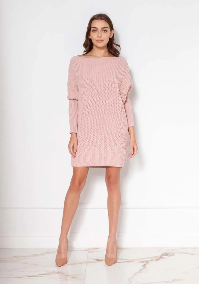 Swetrowa Tunika z Dekoltem w Łódkę - Różowa