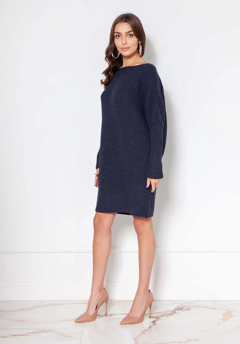 Swetrowa Tunika z Dekoltem w Łódkę – Musztardowa