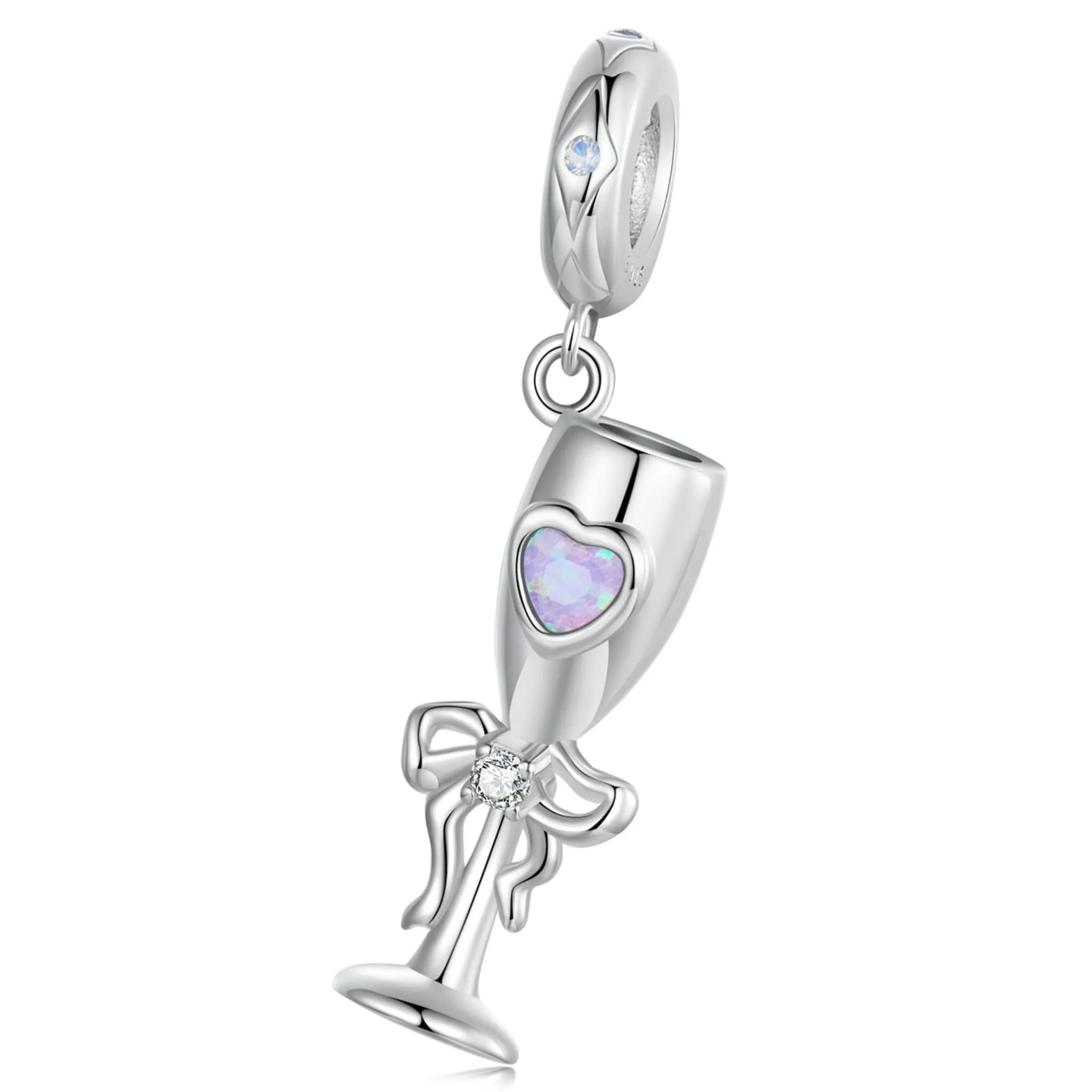 Kieliszek szampana z kokardką srebrny charms zawieszka srebro 925 beads