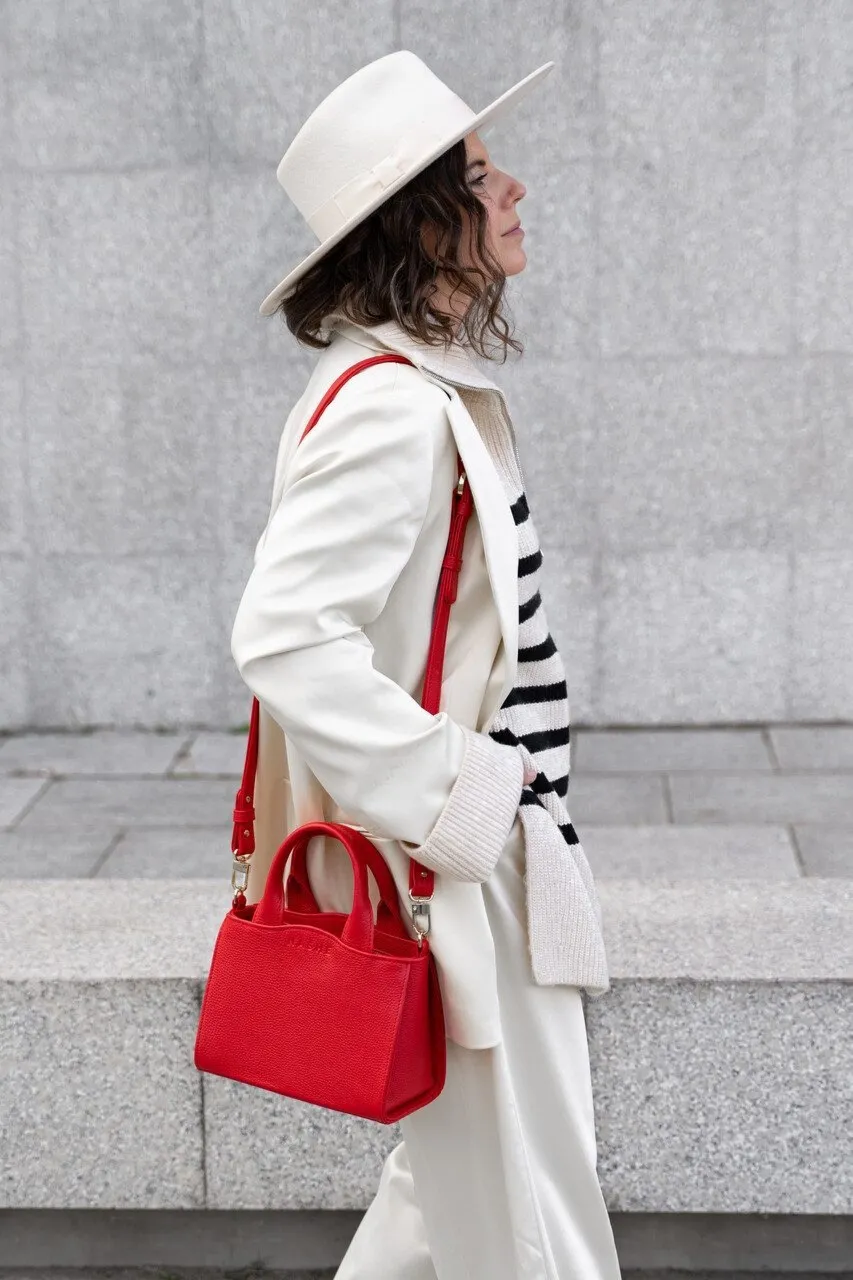 GLAM BAG - skórzana torebka - czerwona - złote okucia