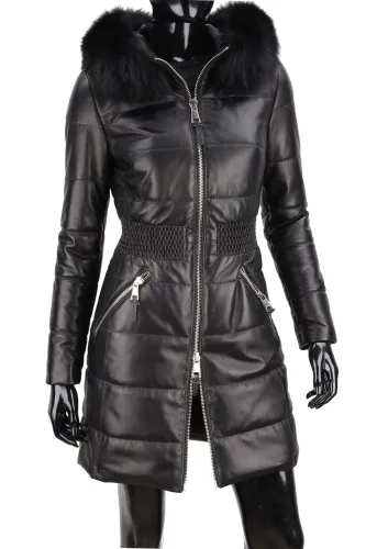2 599,00 złSYL450_2 – ciepły płaszcz skórzany pikowany damski z kapturem DORJAN