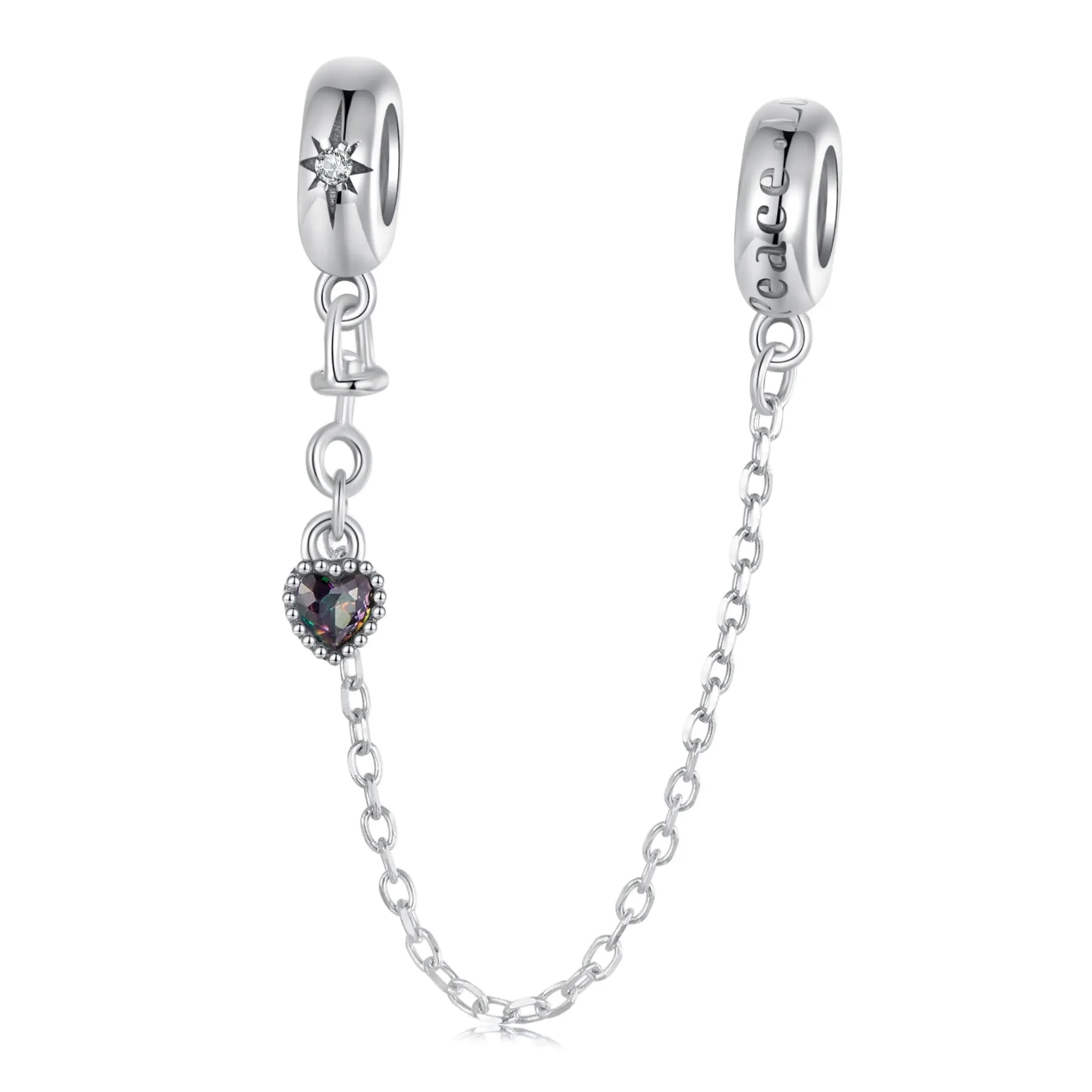 Łańcuszek zabezpieczający podwójny stoper z sercem i grawerem charms srebro 925