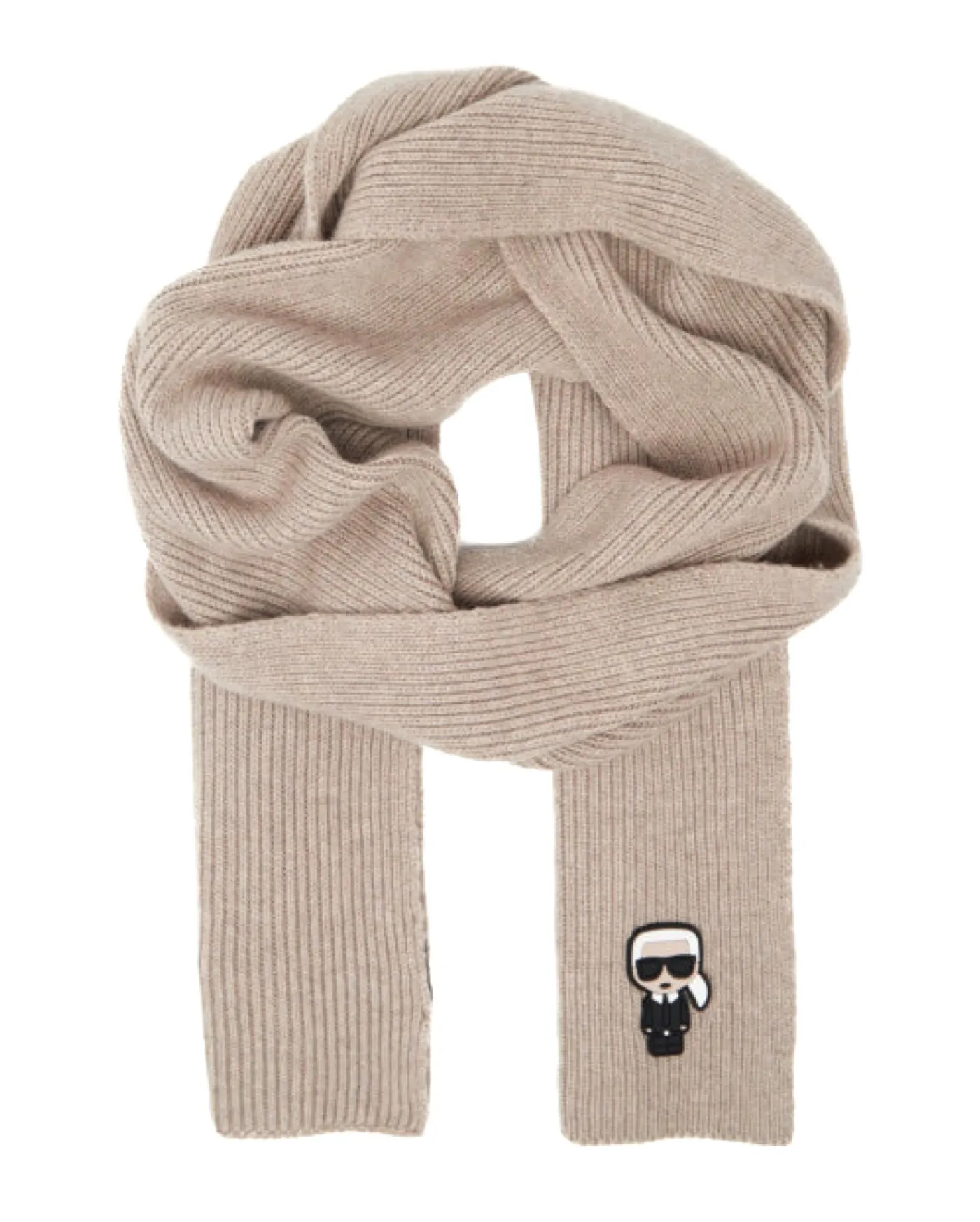 SZALIK DZIANINOWY KARL LAGERFELD Z LOGO Szalik Karl Lagerfeld z logotypem wykonany jest z dzianiny. Materiał jest bardzo przyjemny w dotyku, więc będziesz go nosić z przyjemnością. Chroni przed wiatrem i chłodem. Czarny kolor i klasyczny fason sprawiają, że jest niezwykle uniwersalny. To model uniseks. W jednym rogu znajduje się naszywka z wizerunkiem słynnego kreatora wykonana z małych dżetów. Ten dodatek wykorzystasz do stylizacji o różnym charakterze. Lagerfeld to ikoniczna postać świata mody, która na stałe wpisała się w jej historię. Materiał: 50% poliamid 40% wiskoza 5% wełna 5% kaszmir Poznaj inne produkty KARL LAGERFELD