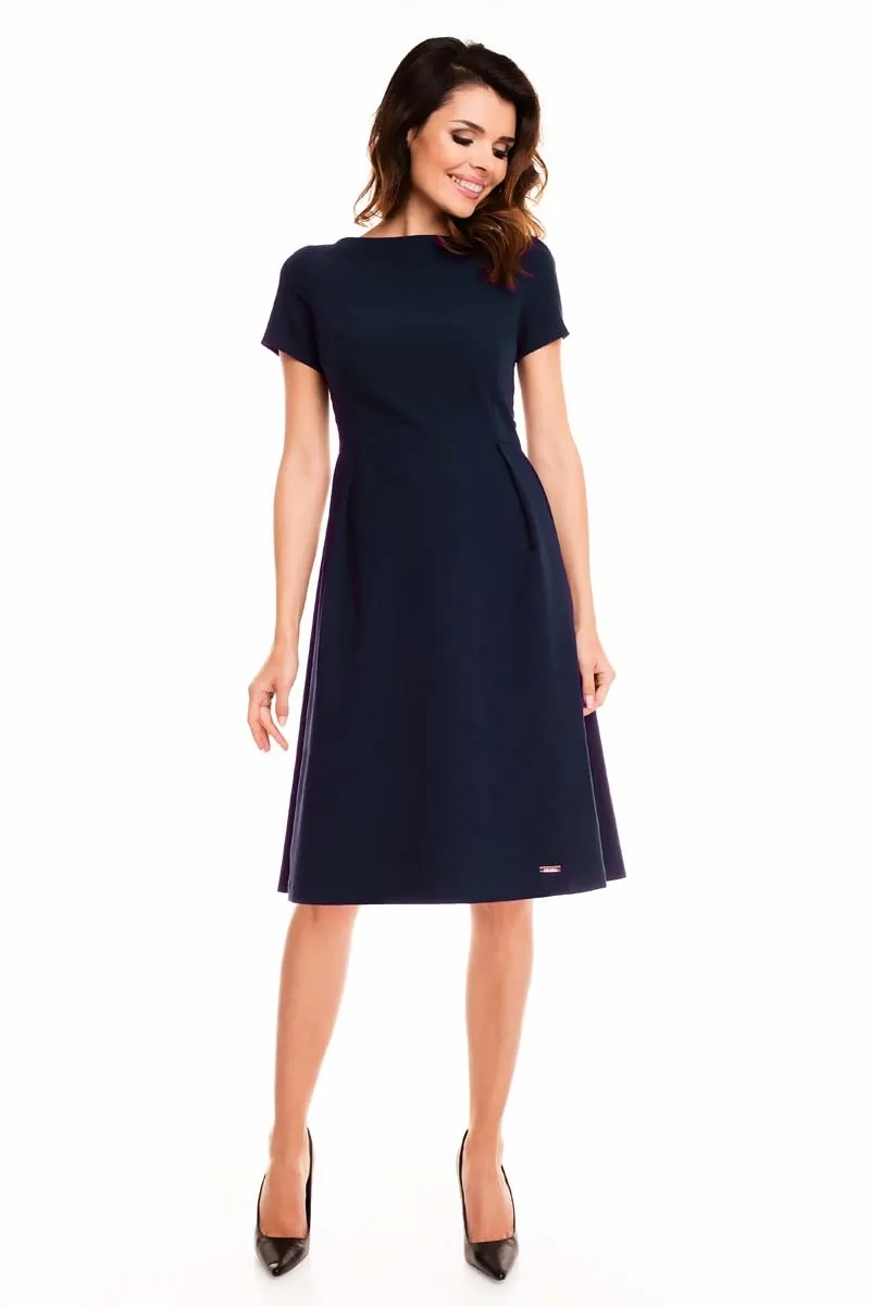 Szara Sukienka Rozkloszowana Midi z Krótkim Rękawem