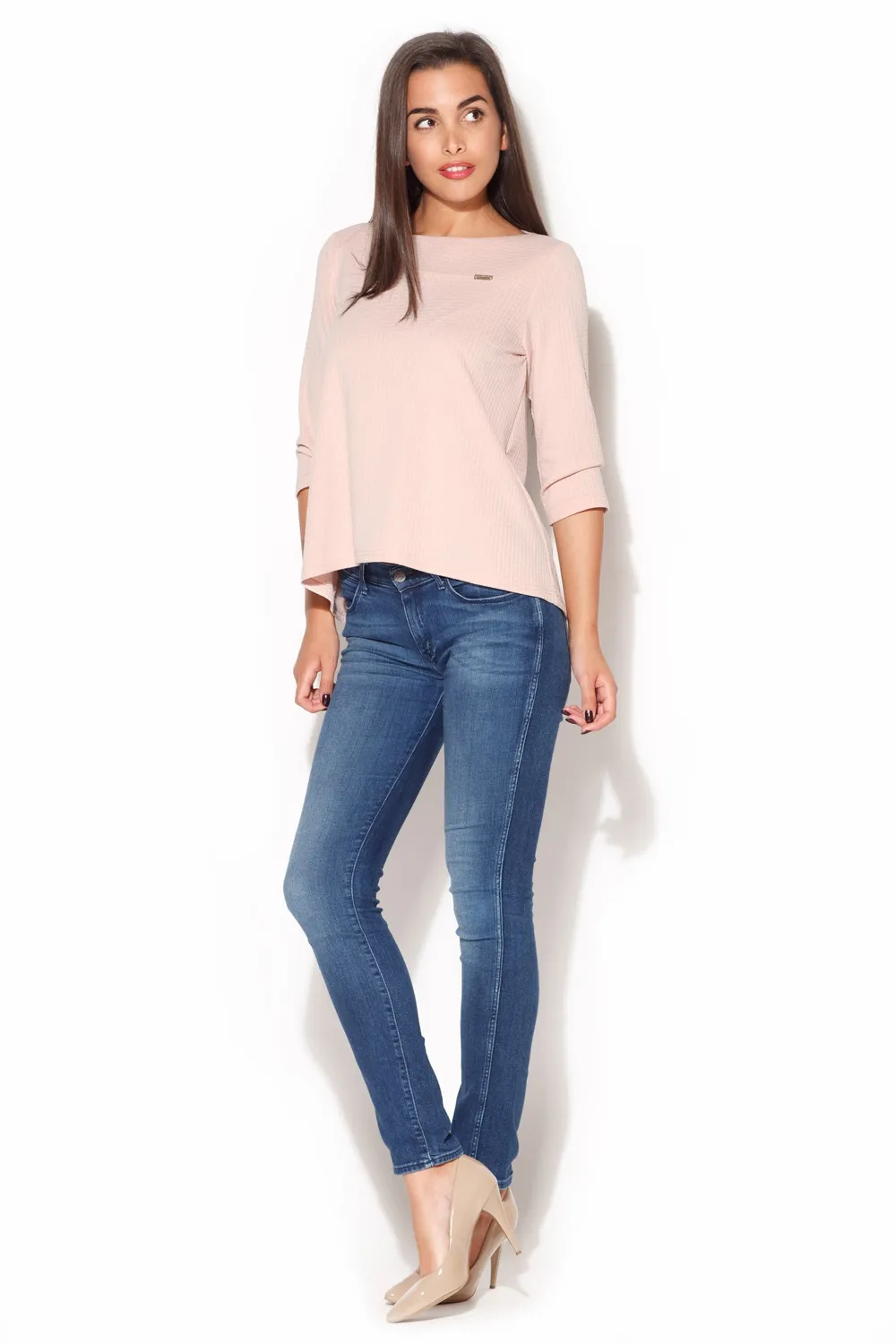 Różowa Bluzka z Dekoltem w Łódkę z Rękawem 3/4