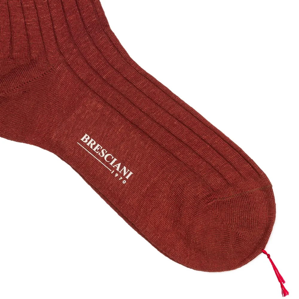 Rudobrązowe lniane skarpety męskie Bresciani S